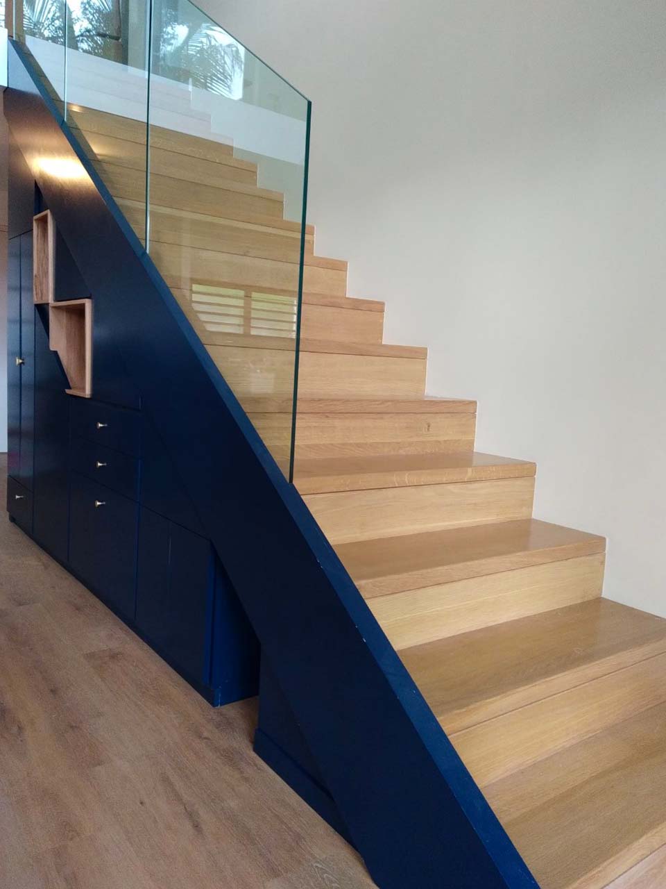 Notre entreprise fabrique des escaliers sur mesures à ossature bois : autoportant, suspendu, à limon central, etc...
